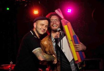 The high point of the evening came when musical instruments worth about 450 euros were presented to Peter Eckert. Peter Eckert works as a teacher for German as a second language and music for child refugees at Fürth vocational school. The instruments will make his work much easier, and the children and teenagers he works with will benefit from them directly. At the next “No Borders!” event (probably in spring 2015), the child and teenage refugees themselves are scheduled to perform with the donated instruments.