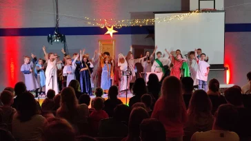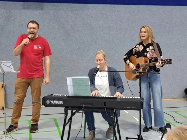 Wer kennt sie bei uns nicht – die Singstunde an jedem Freitag in der Schulzeit? Hier wird gesungen, gratuliert, Geschichten gelauscht und gelacht. Manchmal haben wir Gäste von weit her, z.B. aus Afrika. Meistens treffen wir uns im Forum, vor den Ferien sogar als ganze Schule in der Sporthalle. Dann singen 340 Stimmen von kleineren und größeren Sängern um die Wette! Eine tolle Gelegenheit, gemeinsam zu singen, Gott zu feiern und uns zu freuen.