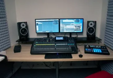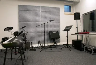 Für musikpädagogische Aktivitäten sollen zwei Musikübungsräume zur Verfügung stehen, die vollständig mit einer Backline und Instrumenten ausgestattet sein sollen. Zwischen den Musikübungsräumen ist ein voll ausgestattetes Tonstudio vorgesehen, dass zum einen der Musikübungsräume hin mit einer Glasscheibe versehen sein soll.
