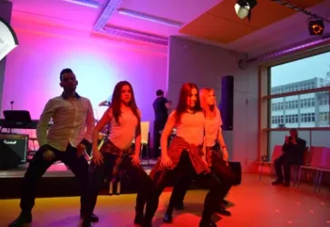 Im 1. OG befindet sich ein kleiner Veranstaltungssaal mit Bühne, in dem die Jugendlichen sich zeigen können. Dort sollen ihre musikalischen Ergebnisse in Form von Contests, CD-Releases, kleinen Festivals, Konzertreihen usw. präsentiert werden. Der Saal hat eine Kapazität von ca. 150 Besuchern und ist damit gut geeignet, gerade jungen Nachwuchsbands oder HipHoppern und Streetdancern eine Plattform zu bieten. Folgende Ausstattung ist notwendig: